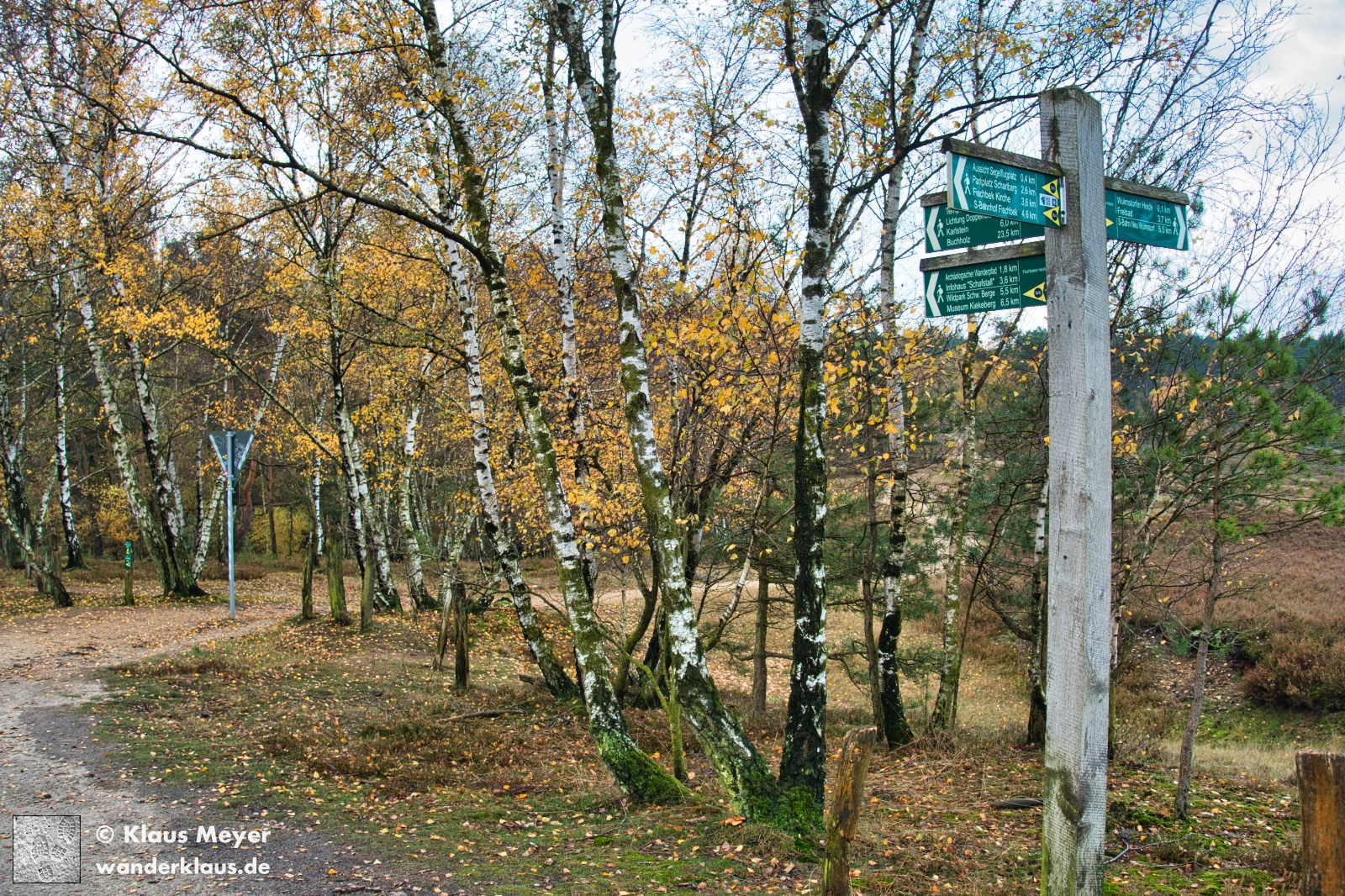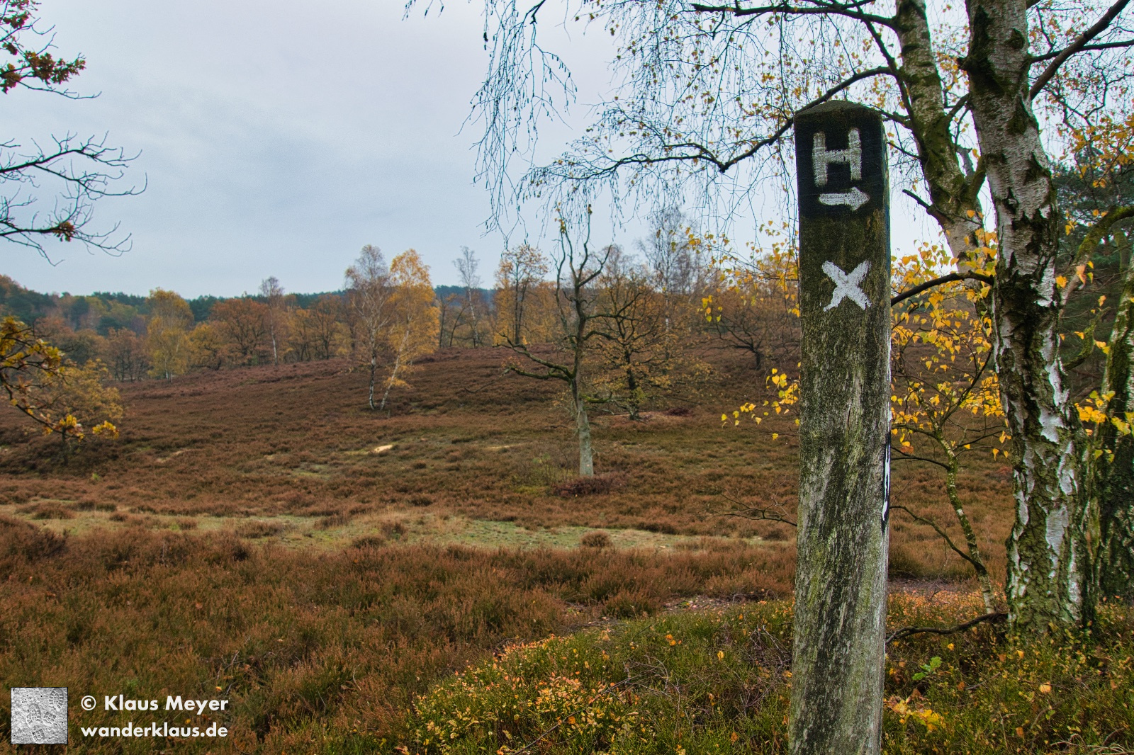 Der mit einem „H“ gut markierte Weg führt jetzt ständig auf und ab durch das Heidegebiet. Jetzt wird schnell klar warum sich das Gebiet auch Harburger Berge nennt. Ein Besuch in der Blütezeit der Heide ist sicher sehr schön aber im November ist es nicht weniger reizvoll und nicht so überlaufen.