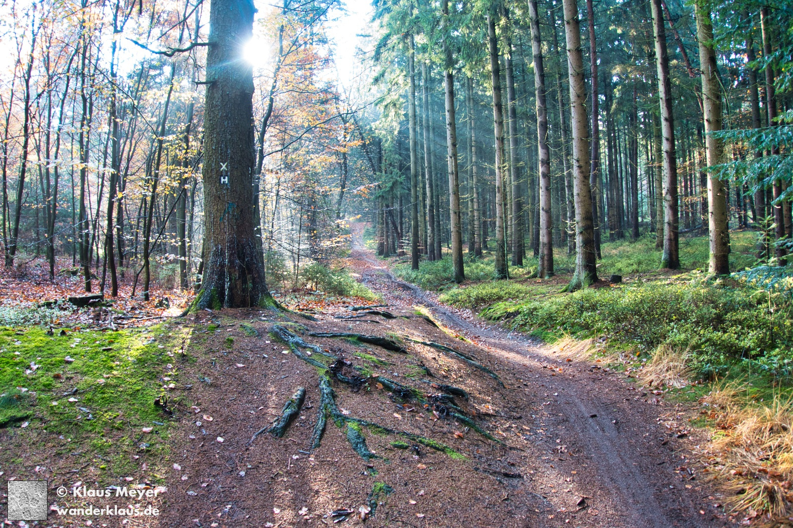 Der Weg führt weitgehend auf schmalen Pfaden durch den Wald. Gerade im Herbst ist die Stimmung hier sehr schön wenn die Sonne versucht sich durch die Bäume zu kämpfen und einzelne Strahlen den Weg erhellen. Dazwischen gelegentlich ein wenig Nebel der die herbstliche Stimmung hervorhebt.
