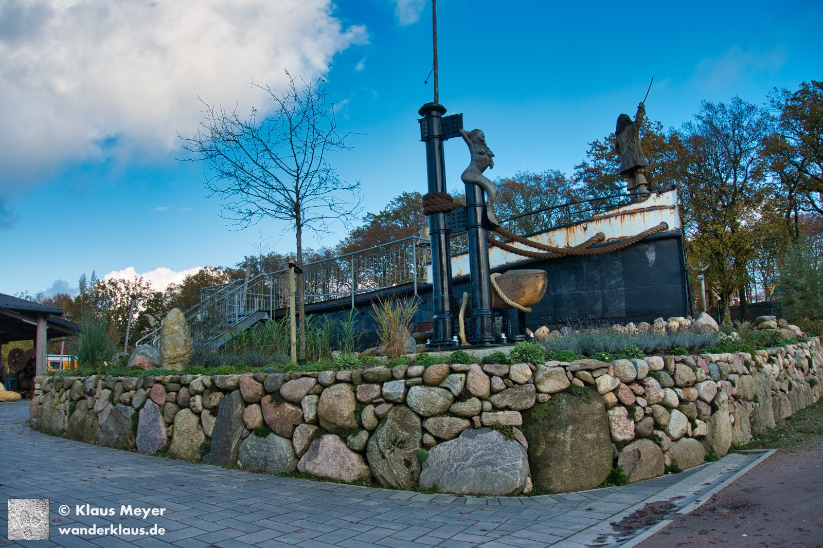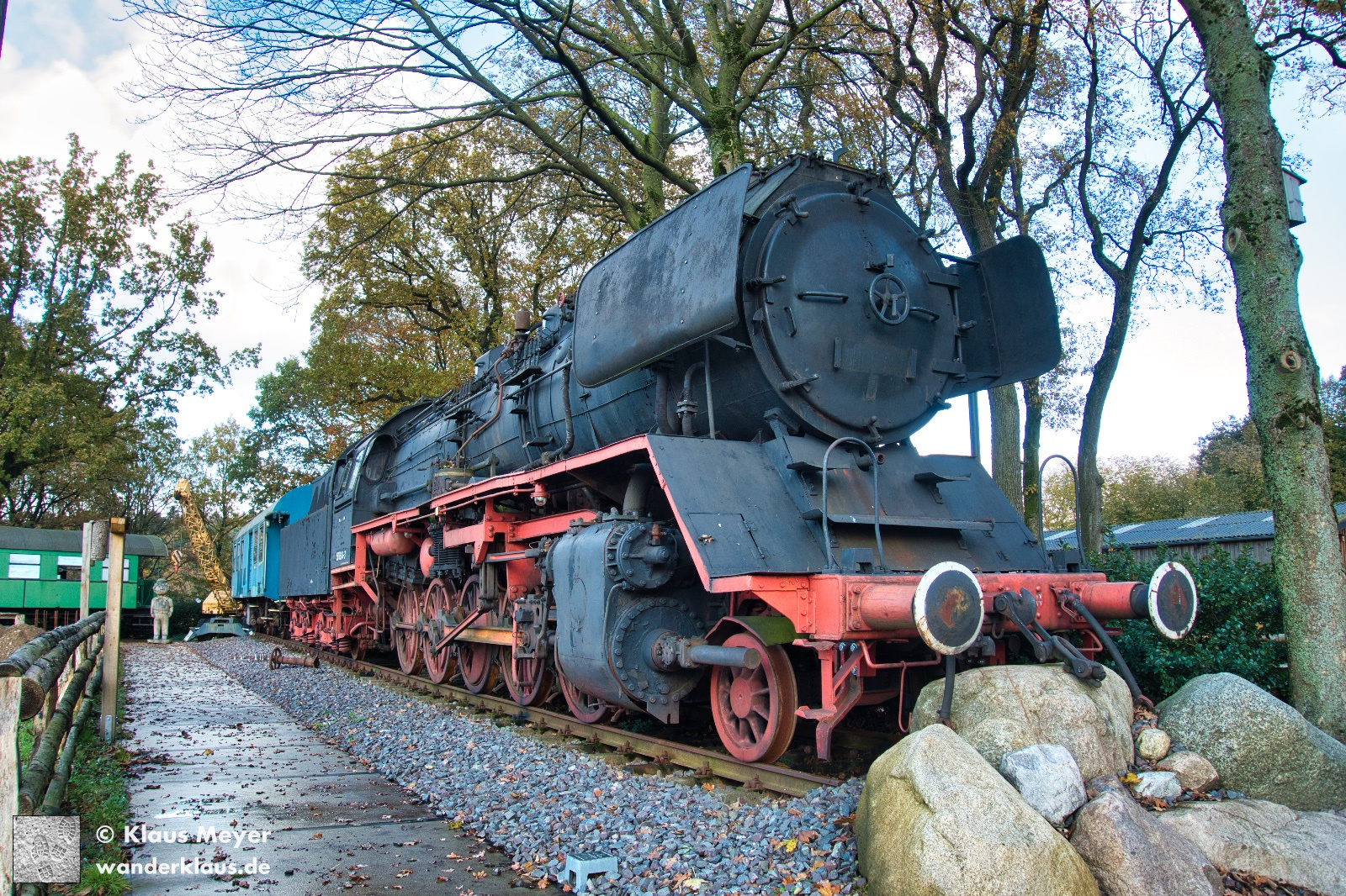 Einige Zeit geht es noch durch den Wald dann öffnet sich dieser vor uns und wir erreichen den Ort Langenrehm. Der große Reiterhof Langenrehm wird jeden Besucher fesseln. Hier finden wir viele Märchen und Geschichten in großen Skulpturen. Mich hat besonders Lukas der Lokomotivführer mit einer etwas größeren Lokomotive begeistert.